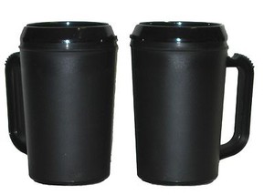 2 Insulated Black Mugs-Large 20 Ounce Made USA Lead Free No BPA