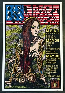 Rare Frank Kozik RCHP Red Hot Chili Peppers Meat Puppets Texas '90 Signed Poster