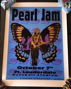 Rare Pearl Jam Ft Lauderdale 1996 Signed AP Matt Getz Silkscreen Concert Poster
