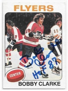 BOBBY CLARKE Autographed Signed 1975-76 Topps card #250 Philadelphia Flyers COA