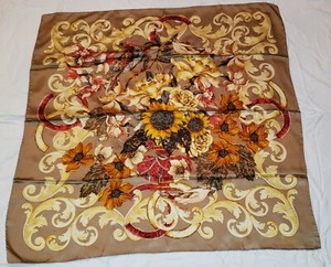 AUTHENTIC CHANEL 38" SILK SCARF DOUBLE C's SUNFLOWERS BIRD AUTUMN COLORS