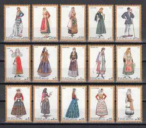 NATIONAL GREEK COSTUMES, Complete Set MNH, Corfu, Salamina, Year : 1974, No : 3