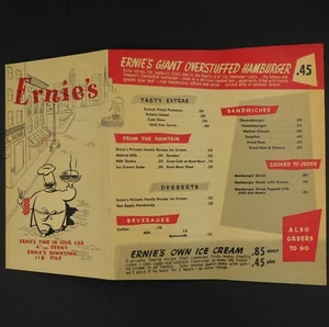Ernie's Soda Fountain Shop Hamburger Drive-in Menu 50's Seattle WA Ice Cream