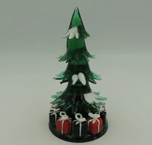Vintage Hand Worked Art Glass Christmas Tree with Presents Figurine 2001