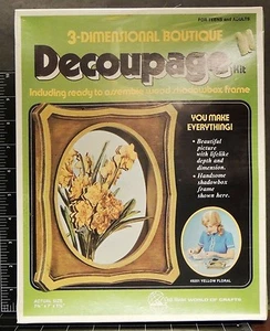Yellow Floral Decoupage 3-Dimensional Boutique wood Shadow Box vintage arts kit