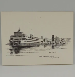 Hal Mize Repro. Card Print Ferry Approaching Seattle on the Puget Sound Waterway