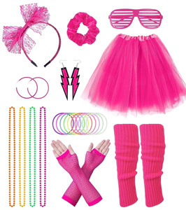 80S Costumes for Women Girl Fancy Outfit Accessories Set with Fishnet Gloves Leg