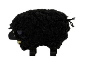 Vintage Black Wooly Felt 3” Sheep Figurine Ornament Handcrafted Christmas Bell