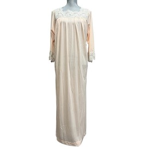 Colony Club Nightgown L Lace Floral Robe Pastel Peach Granny Nylon 60’s 70’s