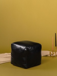 BBH HOMES HANDMADE ECO-FRIENDLY SQUARE SHAPED STUFFED BUFFALO LEATHER BLACK POUF