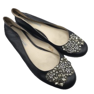 VERA WANG LAVENDER Women’s 9M Black Calf Leather Rhinestone Embellishment Flats