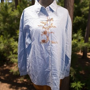 Northern Reflections XL Embroidered Denim Button-up Tree Squirrel Acorns...