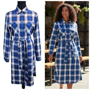 Lauren Ralph Lauren Blue Plaid Flannel Belted Shirtdress Sz 6 Midi Western Chic
