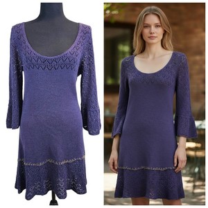 Free People Purple Crochet Knit Flare Sleeve Mini Dress Boho Romantic Whimsigoth