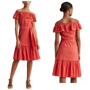 Lauren Ralph Lauren Off The Shoulder Midi Dress 16 Salmon Cottagecore Farmcore