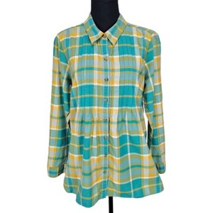 Coldwater Creek Pintucked North Country Soft Cozy Pleated Brushed Flannel Shirt