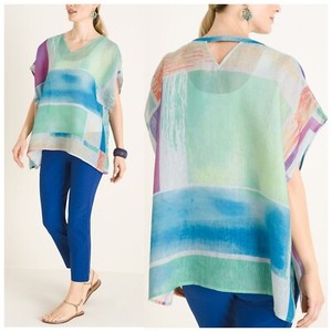 Chico's Linen Poncho Womens Size Large XL Abstract Watercolor Geometric NWT