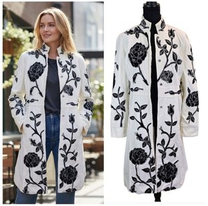 Vtg Newport News Velour Floral Applique Snap Trench Coat 14 Whimsigoth Romantic