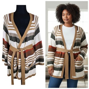 Old Navy Belted Striped Cardigan Sweater XL Neutral Fall Boho Cozy Knit Pockets