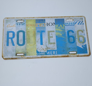 Novelty Route 66 Licence Plate - see photos for wear - small bend in corner