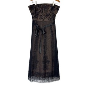 BCBGMAXAZRIA Black Nude A-Line Tulle Lined Strapless Dress Women's Size Medium