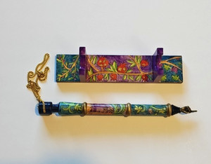 Yair Emanuel Wood Yad Torah Pointer w chain & Stand Jerusalem Judaica