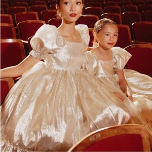 Ivy City Co Champagne Gold Coco Puff Sleeve Babydoll Midi Dress XXS