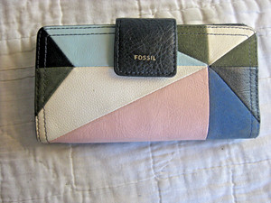 FOSSIL LOGAN TAB WALLET WOMENS DESIGNER BILLFOLD PRE OWNED USED COLORFUL MODERN