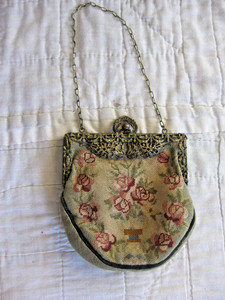 ANTIQUE PETIT POINT NEEDLEWORK PURSE ROSE FLORAL VICTORIAN WOMENS VINTAGE BAG