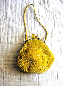 ANTIQUE YELLOW BEADED ART DECO PURSE VINTAGE WOMENS HAND BAG 1920S FLAPPER OLD