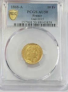 1868-A Paris France Gold 10 Franc PCGS AU50 True View GAD-1015