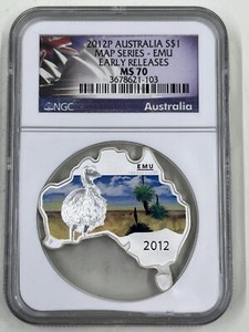2012P Australia S$1 NGC MS70 Emu Map Series