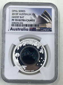2015P Australia S$1 NGC PF70 Ultra Cameo Ghost Bat Opal Series
