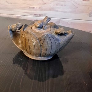 Vintage Chinese Clay Frog Lotus Leaf Teapot