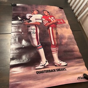 John Elway Broncos Joe Montana 49ers Mizuno Vintage 1986 Poster Signed