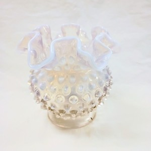 Vintage Fenton Hobnail Ruffled Rim White Opalescent Vase
