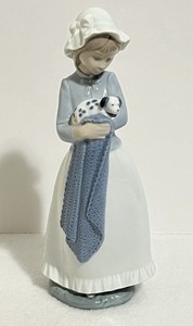 Lladro Nao Figurine 10” Girl Holding Puppy, Hand Made in Spain