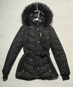 Michael Kors Parka Jacket w/ Belt & Faux Fur Hooded Black Camo Puffer Size Small