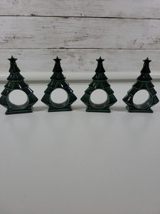Vintage Christmas Tree Ceramic Napkin Rings Set of 4 Holiday Table Decor