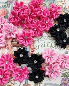 45 Ribbon Rose Flower Rhinestone Crystal Bead Trim/Sewing/Craft/Black/Pink F23