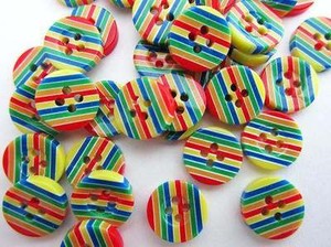 20 Rainbow Stripes 13mm Plastic Flatback Round Sewing Button/4 holes/craft Sb56