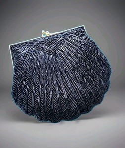 Carla Marchi Evening Handbag Clutch Bag Purse Black Beaded Shell w/ Snake Chain