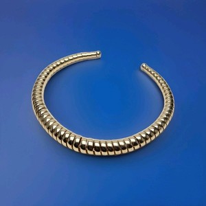 Vintage Gold Tone Twisted Metal Coiled Choker Spring Tube Collar Necklace 1980s