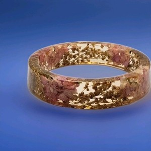 Vintage Clear Lucite Bangle Bracelet White Baby Breath Pink Dried Flowers