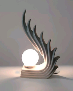 ART DECO REVIVAL HUGE CASCADING WING FLAME LAMP WHITE CERAMIC LIMELIGHT RARE