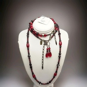 Allen Owen Glass Collection Crystal Red Beaded Necklace Bracelet Earrings Set