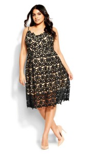 City Chic So Fancy Embroidered Lace Dress Inky Blue Black 18
