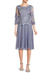Alex Evenings boat neck 3/4 sleeve floral embroidered bodice stretch mesh dress