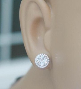 0.80ct Diamond Stud Halo Earrings 18k White Gold 8mm Round