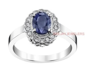 Natural Sapphire Diamond Ring 2ct Blue 14k White Gold Engagement
